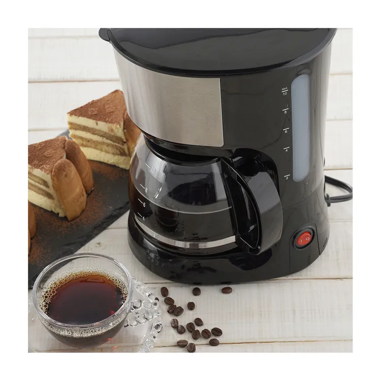 Empieza tus mañanas con un delicioso café gracias a nuestra Cafetera de 10 tazas, llévala en línea y completa tu cocina. Cafetera con capacidad para 10 tazas de café (Cada una de 125 ml) , incluye un filtro eco amigable el cual es extraíble, lavable y reutilizable, mantiene el café caliente mientras la cafetera está conectada en un promedio de temperatura ideal de 65°C, incluye cuchara medidora plástica, sistema de apagado automático y cuenta con una jarra de vidrio refractario con una capacidad volumétrica de 1250 ml.