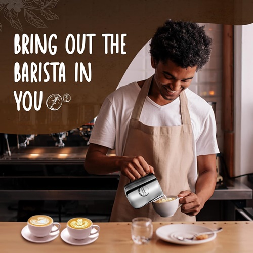 Tamaño ideal: esta jarra de espumador a prueba de fugas y apta para lavavajillas de 20 onzas viene con medidas de precisión en ambos lados para que no necesites un dispositivo de medición separado. Es perfecto para hacer una o dos potentes tazas de capuchino o espresso