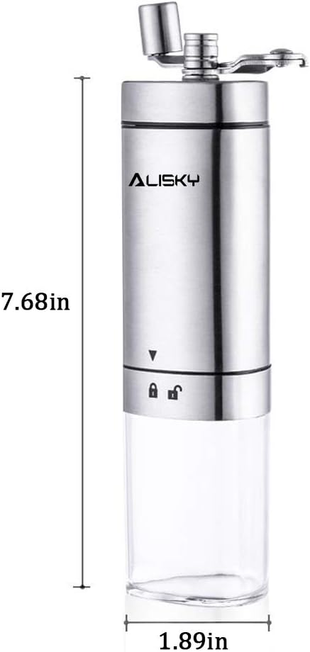 Molinillo de café manual sin esfuerzo: el práctico mecanismo de manivela extraíble elimina constantemente más del 90% del ruido que producen los molinillos eléctricos. El diseño ergonómico delgado y elegante proporciona un agarre firme mientras se muele con facilidad. Fácil de limpiar: este molinillo de café manual es fácil de desmontar para su limpieza.